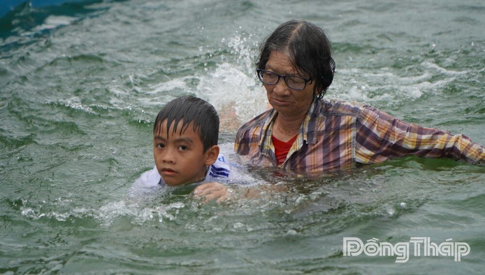 Suốt 23 năm qua, hình ảnh người phụ nữ luống tuổi, ngâm mình dưới nước hàng giờ đồng hồ, hò hét “chỉ đạo” đám trẻ, tay nâng đỡ bụng, tay nâng cằm đứa nhỏ để dạy cho chúng bơi đã trở nên quen thuộc với người dân miệt sông nước.