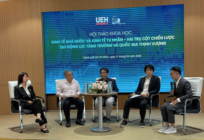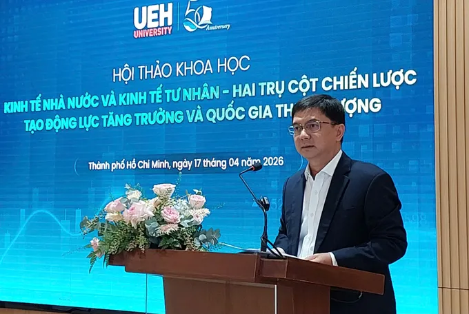 Ngày 17-4, Đại học Kinh tế TPHCM (UEH) tổ chức hội thảo khoa học Kinh tế nhà nước và kinh tế tư nhân – hai trụ cột chiến lược tạo động lực tăng trưởng và quốc gia thịnh vượng.