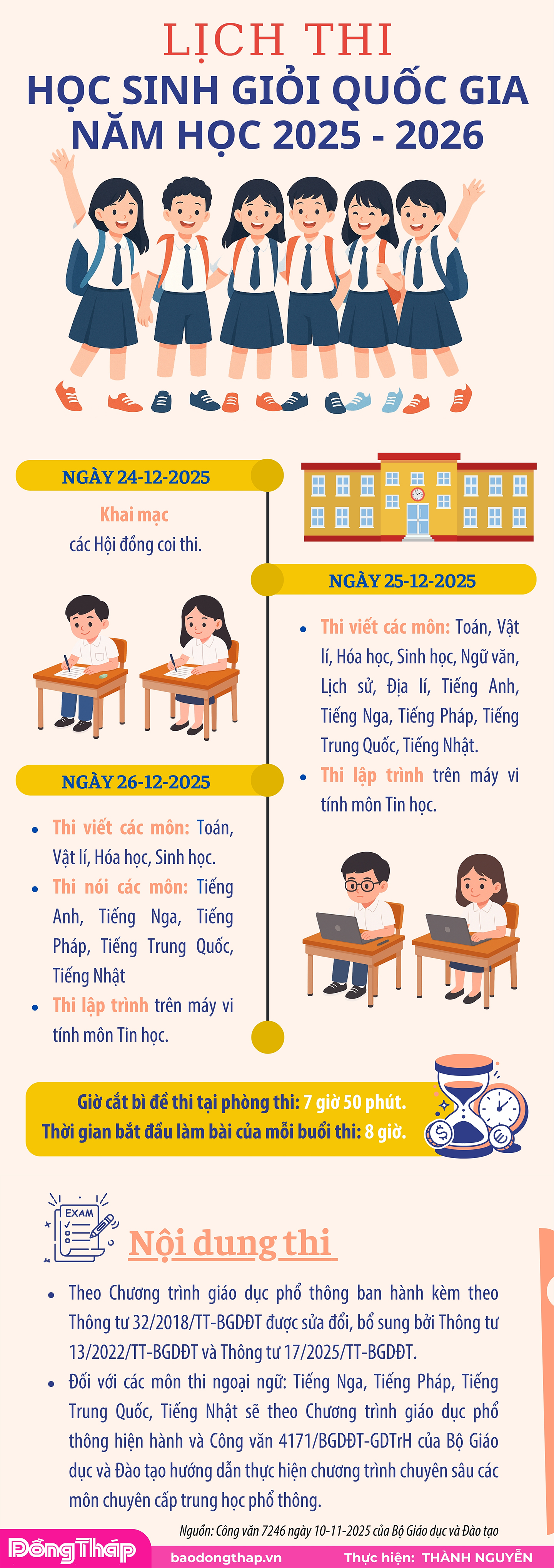 [Infographic] Lịch thi học sinh giỏi quốc gia năm học 2025 - 2026Thứ Sáu, 28/11/2025, 23:48 (GMT+7)Theo dõi Báo Đồng Tháp trên Từ khóa: lịch thihọc sinhquốc gia Bình luận 🔄 Gửi