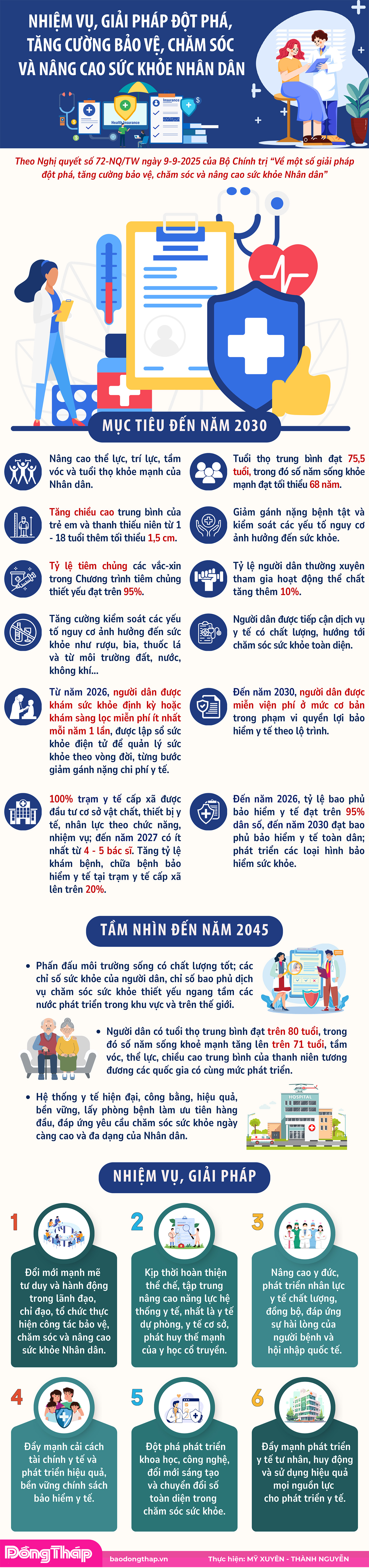 [Infographic] Nhiệm vụ, giải pháp đột phá, tăng cường bảo vệ, chăm sóc và nâng cao sức khỏe Nhân dân
