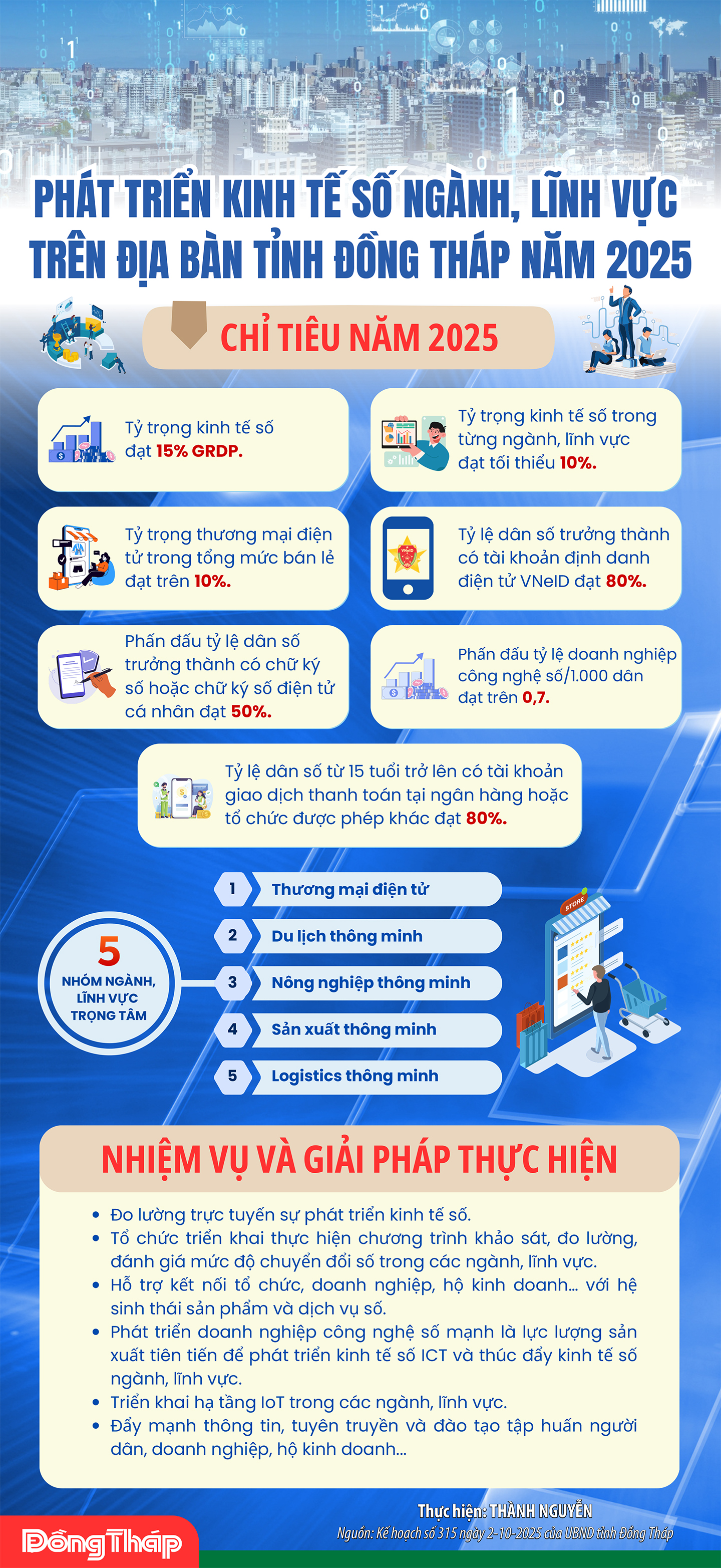 [Infographic] Phát triển kinh tế số ngành, lĩnh vực trên địa bàn tỉnh Đồng Tháp năm 2025