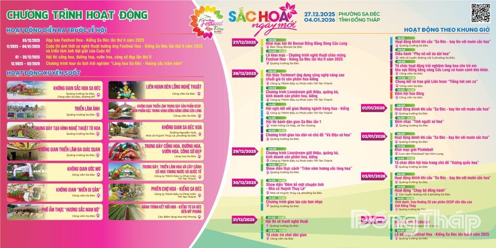 Diễn ra từ ngày 27-12-2025 đến hết ngày 4-1-2026, Festival lần này hứa hẹn mang đến một không gian rực rỡ và sống động hơn bao giờ hết. Với chuỗi 30 hoạt động (bao gồm 18 hoạt động chính và 12 hoạt động hưởng ứng), Quảng trường Sa Đéc và các vùng lân cận sẽ trở thành một “bảo tàng sống” về hoa kiểng.