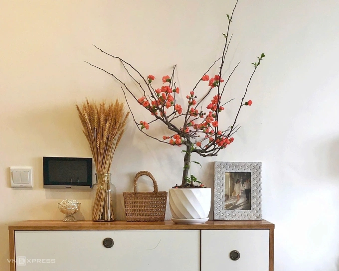 Thay vì cây lớn đặt ngoài hiên, xu hướng chơi cây cảnh tết năm nay nghiêng về các chậu hoa nhỏ đặt bàn, kệ tủ, phù hợp với căn hộ chung cư hoặc nhà phố diện tích nhỏ.