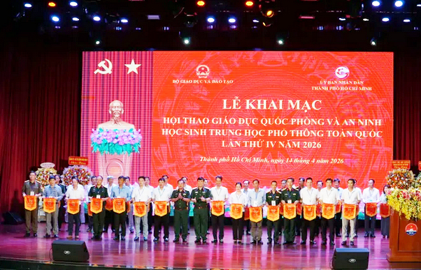 Sáng 14-4, tại Học viện cán bộ TPHCM, UBND TPHCM phối hợp với Bộ GD-ĐT tổ chức lễ khai mạc Hội thao Giáo dục quốc phòng và an ninh học sinh THPT toàn quốc lần thứ IV năm 2026.