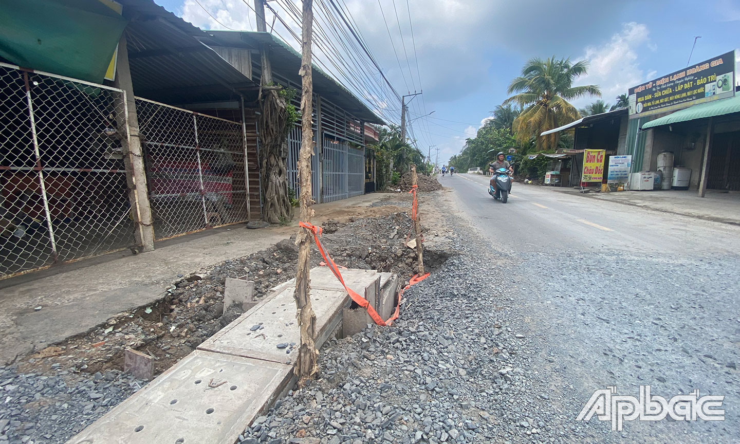 Ông Nguyễn Trường Giang (ấp Ngãi Lợi, xã Thân Cửu Nghĩa ) cho biết: “Công trình có dây giăng nhưng không đảm bảo an toàn, thiếu biển cảnh báo, đất thi công bỏ tràn ra đường… khiến người dân qua lại rất khó khăn. Đây là tuyến đường tỉnh, rất đông phương tiện qua lại nên rất nguy hiểm, đặc biệt vào buổi tối nguy cơ tai nạn càng cao.