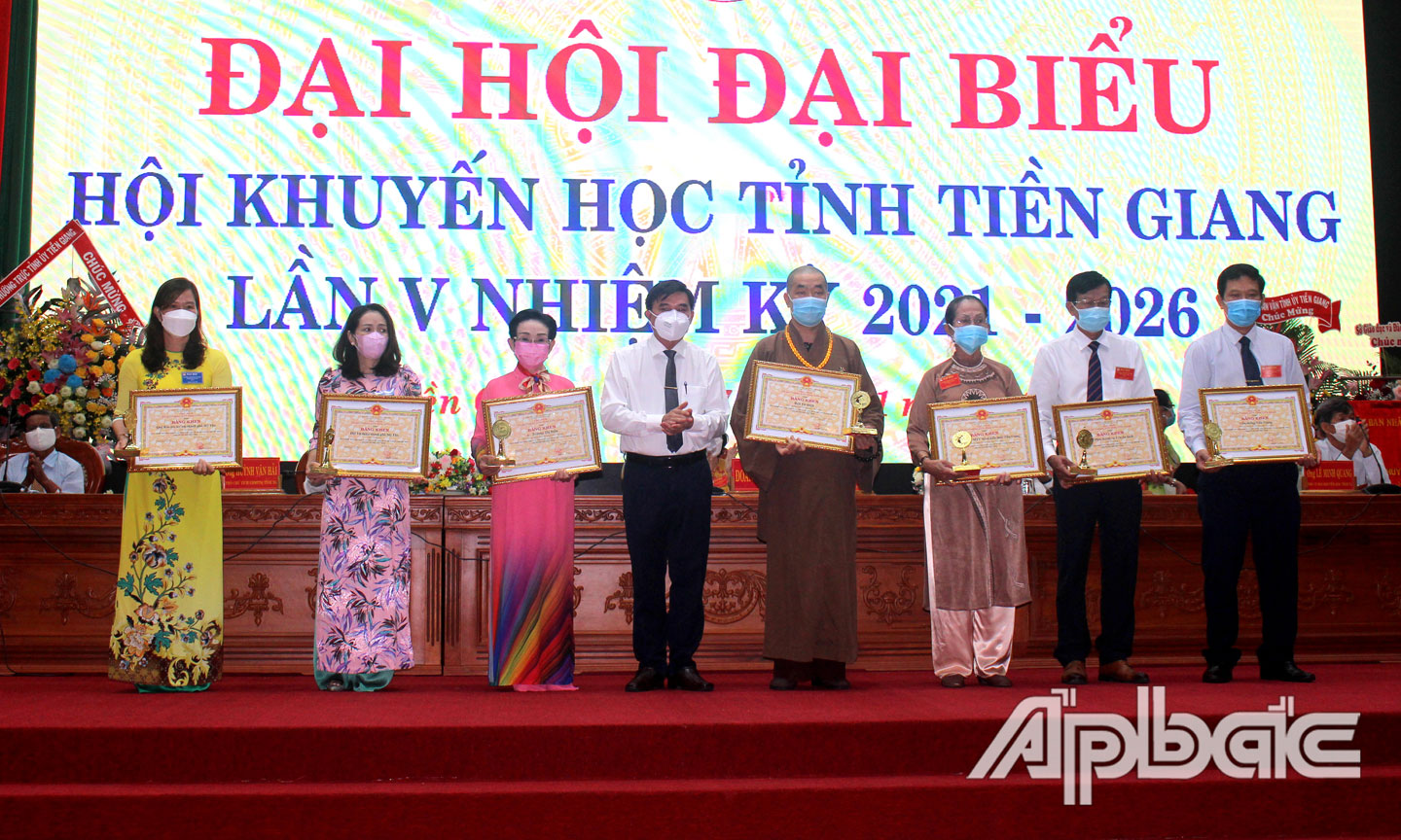 Dịp này, Trung ương Hội Khuyến học Việt Nam tặng Cờ thi đua cho 3 đơn vị có thành tích xuất sắc trong giai đoạn 2015 - 2020; Trung ương Hội Khuyến học Việt Nam và UBND tỉnh Tiền Giang tặng nhiều Bằng khen cho các tập thể và cá nhân có thành tích xuất sắc trong giai đoạn 2015 - 2020.