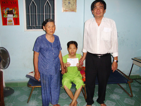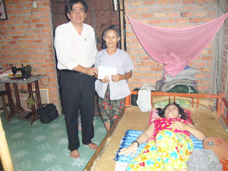 Lúc 17 giờ 45 phút, Báo Ấp Bắc đã chuyển 2 triệu đồng cho em Bùi Thị Thương, 28 tuổi, ngụ tổ 11, khu phố 4 (phường 9, TP. Mỹ Tho). Cách đây 4 năm, em Thương bị chứng bệnh viêm tủy não lan tỏa, hiện nằm liệt giường, tiêu tiểu không kiểm soát và đôi mắt đã mù.