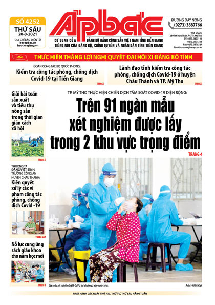 Theo bác sĩ Nguyễn Văn Trạng, Phó Giám đốc Trung tâm Y tế TP. Mỹ Tho, qua 2 ngày thực hiện chiến dịch lấy mẫu tầm soát Covid-19 cộng đồng diện rộng, trên 91 ngàn mẫu xét nghiệm Covid-19 đã được lấy tại 2 khu vực trọng điểm của thành phố. Trên 91 ngàn mẫu xét nghiệm được lấy trong 2 khu vực trọng điểm (xem trang 4).