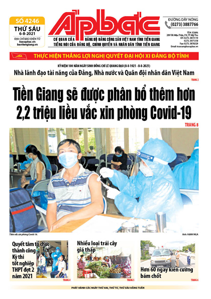 Cùng với các biện pháp trên, tỉnh còn tập trung thực hiện nhanh công tác tiêm vắc xin phòng Covid-19 để tạo miễn dịch cộng đồng, góp phần đẩy lùi dịch bệnh. Tiền Giang sẽ được phân bổ thêm hơn 2,2 triệu liều vắc xin phòng Covid-19 (xem trang 8).