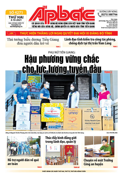 Trong cuộc chiến với dịch Covid-19, bên cạnh các lực lượng tuyến đầu đang vất vả ngày đêm phải xa người thân, gia đình để làm nhiệm vụ thì nhiều cán bộ, hội viên, phụ nữ các cấp Hội Liên hiệp Phụ nữ tỉnh Tiền Giang cũng tất bật với nhiều hoạt động thiết thực, ý nghĩa. Hậu phương vững chắc cho lực lượng tuyến đầu (xem trang 2).