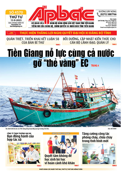 Trong tháng 10-2023, Đoàn Thanh tra của Ủy ban châu Âu (EC) sẽ đến Việt Nam kiểm tra công tác chống khai thác thủy sản bất hợp pháp, không báo cáo và không theo quy định (IUU) lần thứ 4. Do đó, tỉnh Tiền Giang đang quyết tâm cùng cả nước thực hiện các giải pháp chống khai thác IUU để gỡ “thẻ vàng” EC. Tiền Giang nỗ lực cùng cả nước gỡ “thẻ vàng” EC (xem trang 4).