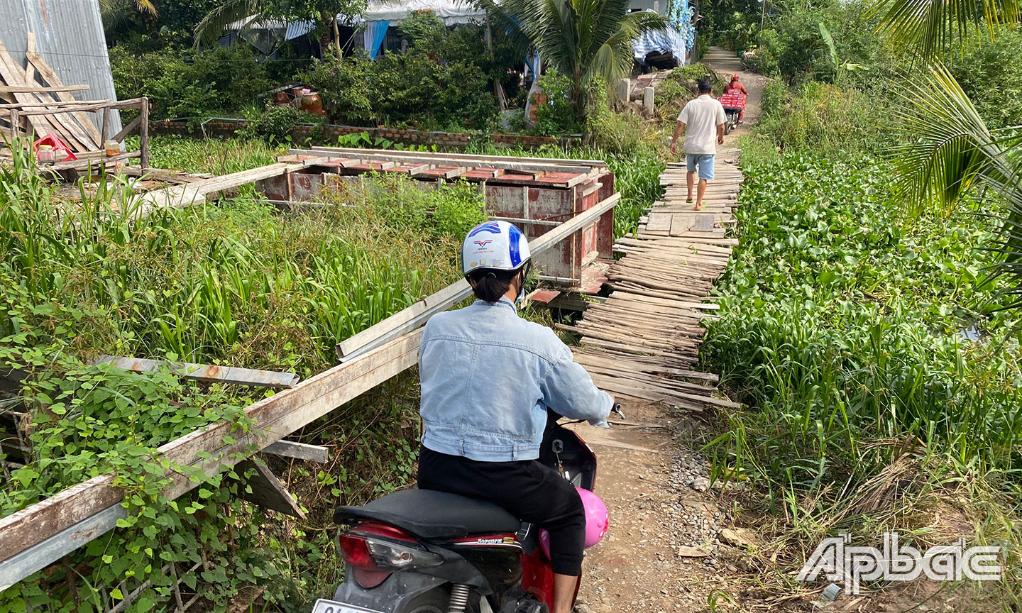 Theo ghi nhận phóng viên, cầu bê tông dài 15 m, rộng 3 m do Ban Quản lý dự án đầu tư xây dựng và Phát triển quỹ đất huyện Cai Lậy làm chủ đầu tư, với nguồn kinh phí gần trên 400 triệu đồng thay thế cầu trước đó đã xuống cấp. Do ngừng thi công nên người dân địa phương phải bắc cầu tạm để đi lại, mất an toàn giao thông và đặc biệt nguy hiểm vào ban đêm.