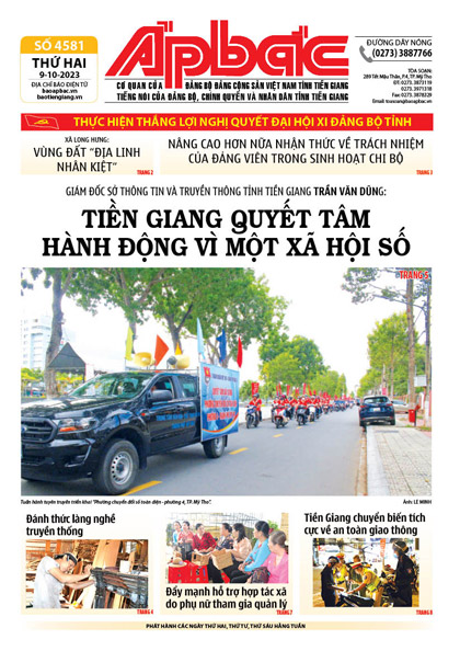 Nhân Ngày Chuyển đổi số quốc gia và Ngày Chuyển đổi số tỉnh Tiền Giang (10-10), phóng viên Báo Ấp Bắc đã có cuộc trao đổi với Giám đốc Sở Thông tin và Truyền thông tỉnh Tiền Giang Trần Văn Dũng về vai trò, lợi ích và tầm quan trọng của chuyển đổi số đối với phát triển kinh tế - xã hội tỉnh nhà. Tiền Giang quyết tâm hành động vì một xã hội số (xem trang 5).