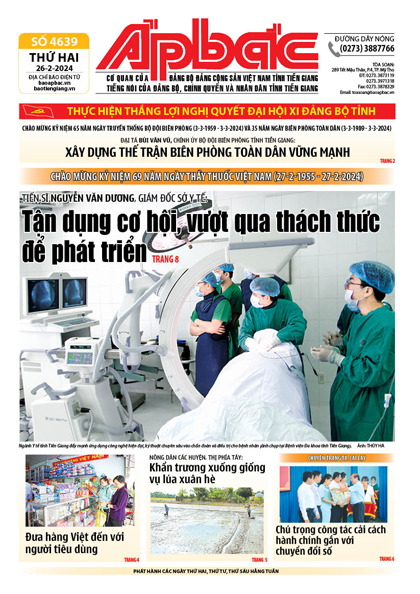 Năm 2023, các hoạt động chuyên môn, chỉ tiêu cơ bản của ngành Y tế Tiền Giang đều đạt theo kế hoạch được giao. Nhân kỷ niệm 69 năm Ngày Thầy thuốc Việt Nam (27-2-1955 - 27-2-2024), Tiến sĩ Nguyễn Văn Dương, Giám đốc Sở Y tế đã chia sẻ về những cơ hội và thách thức đối với ngành y tế tỉnh nhà hiện nay. Tận dụng cơ hội, vượt qua thách thức để phát triển (xem trang 8).