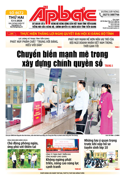 Tại Tiền Giang, chuyển đổi số đã tác động mạnh mẽ, sâu rộng và toàn diện trên tất cả các lĩnh vực. Trong đó, chính quyền số là 1 trong 3 trụ cột chính, đóng vai trò quan trọng trong việc định hình và vận hành quá trình chuyển đổi số. Xây dựng chính quyền số thành công sẽ mang lại nhiều lợi ích cho cơ quan quản lý, người dân và toàn xã hội. Chuyển biến mạnh mẽ trong xây dựng chính quyền số (xem trang 5).