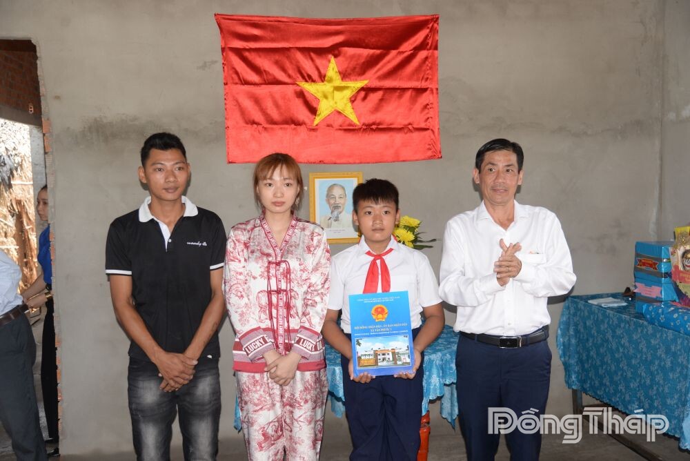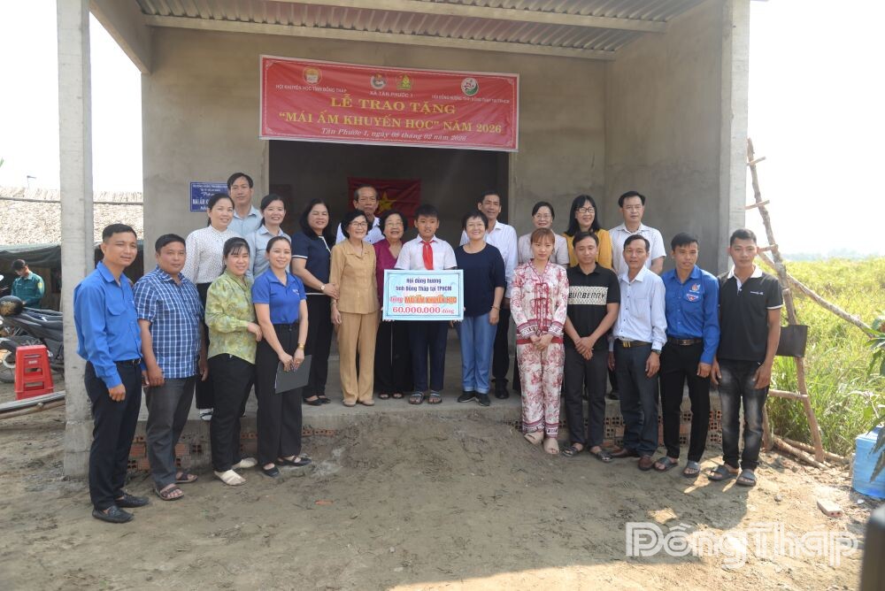 (ĐTO) Ngày 8-2, Hội Khuyến học tỉnh phối hợp Hội Đồng hương Đồng Tháp tại TP. Hồ Chí Minh và UBND xã Tân Phước 1 tổ chức Lễ bàn giao “Mái ấm khuyến học” cho em Trần Nguyễn Khánh Phong, học sinh lớp 5, Trường Tiểu học Thạnh Mỹ, là trẻ mồ côi khó khăn về nhà ở, ngụ ấp Mỹ Lộc, xã Tân Phước 1.