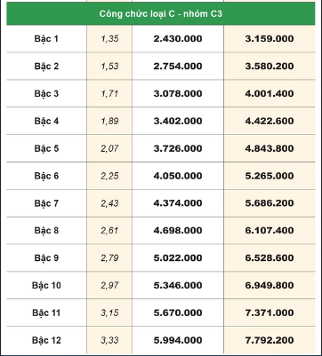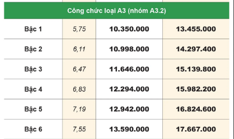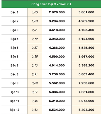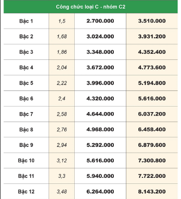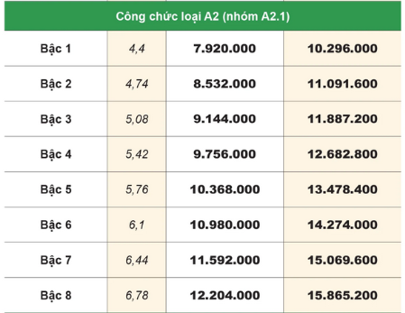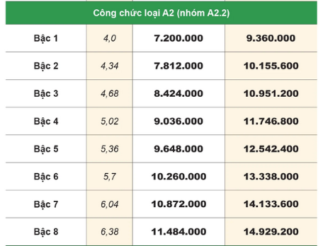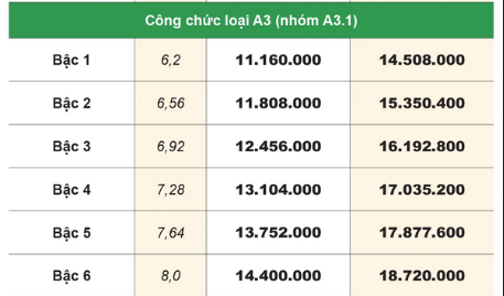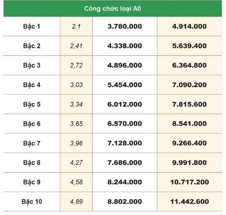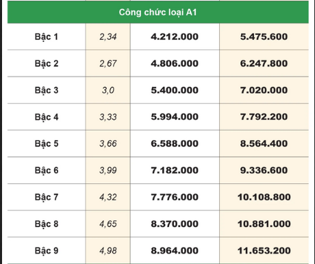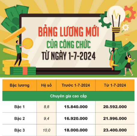 Bảng lương của công chức từ ngày 1-7-2024 theo mức lương cơ sở 2,34 triệu đồng/tháng.