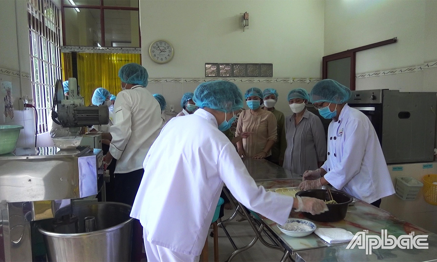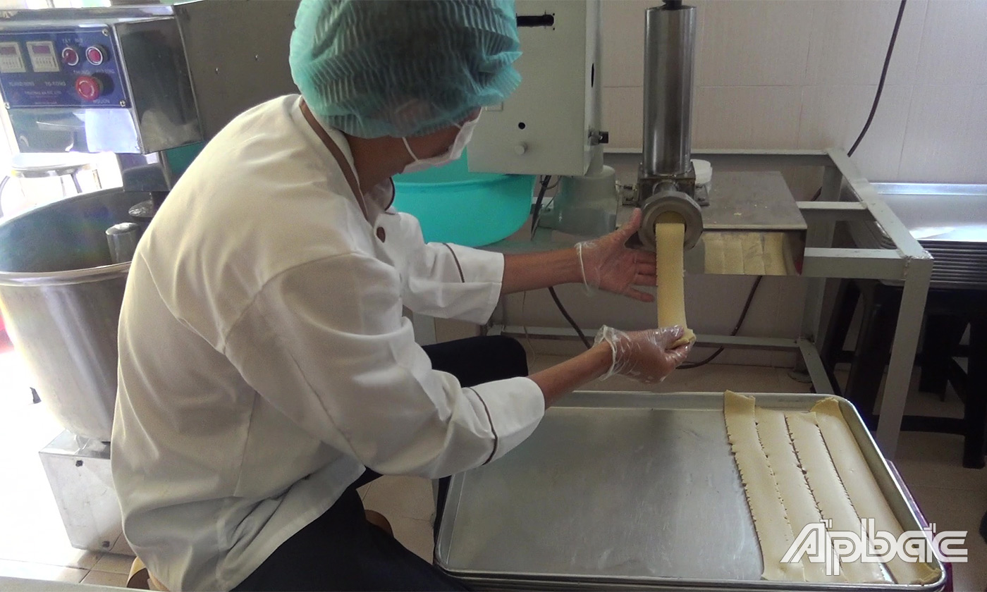 Vừa đưa chúng tôi tham quan cơ sở sản xuất bánh, chị Thy vừa chia sẻ về quy trình làm bánh. Trước đây, chưa có máy móc nên gia đình chủ yếu làm thủ công, sau đó được Hội LHPN thị trấn Vĩnh Bình tư vấn, giới thiệu các chương trình hỗ trợ phụ nữ khởi nghiệp của các cấp Hội LHPN, chị Thy đã mạnh dạn vay vốn đầu tư thêm nhiều trang thiết bị máy móc hiện đại, mở rộng quy mô sản xuất. Chị cũng đã không ngừng nghiên cứu các nguyên liệu giảm lượng đường trong bánh để đáp ứng yêu cầu người tiêu dùng nhưng vẫn đảm bảo an toàn vệ sinh thực phẩm. Các công đoạn đóng gói, bảo quản đều được thực hiện theo quy trình hiện đại.