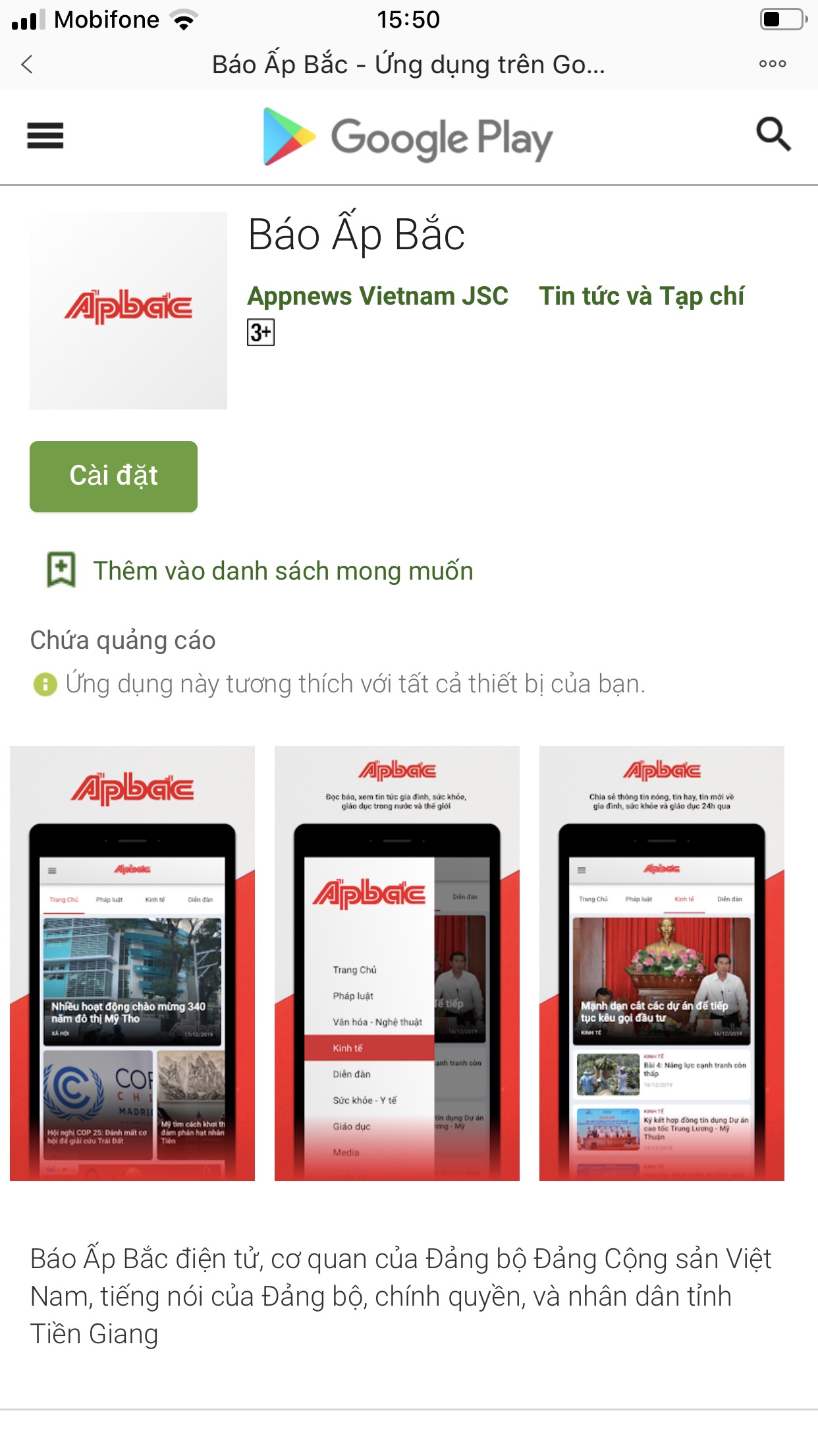 Nhằm tạo sự tiện ích cho người dùng, giúp độc giả dễ dàng tiếp cận thông tin, từ ngày 1-1-2020, Báo Ấp Bắc ra mắt ứng dụng chạy trên thiết bị di động hệ điều hành Android và IOS.