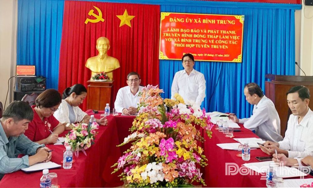 (ĐTO) Chiều 30-12, Đoàn công tác của Báo và phát thanh, truyền hình Đồng Tháp do đồng chí Nguyễn Duy Phúc Huy, Phó Tổng Biên tập làm Trưởng đoàn, đã có buổi làm việc với lãnh đạo Đảng ủy, UBND xã Bình Trưng và lãnh đạo Đảng ủy, UBND xã Long Hưng về tăng cường phối hợp trong công tác tuyên truyền năm 2026.