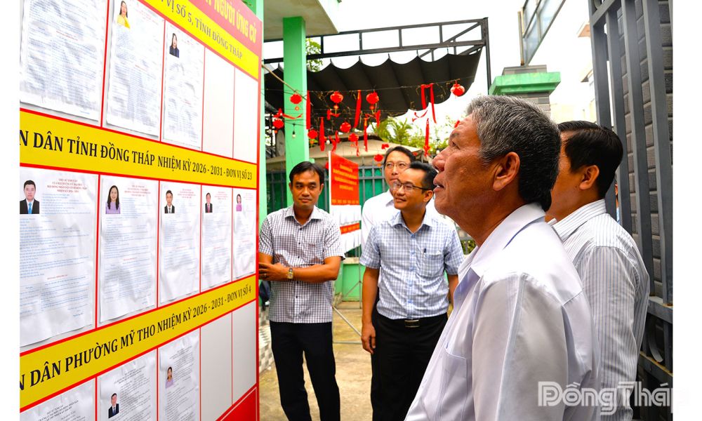 (ĐTO) Sáng 4-3, Ban Chỉ đạo công tác bầu cử tỉnh Đồng Tháp kiểm tra công tác bầu cử đại biểu Quốc hội (ĐBQH) khóa XVI và đại biểu HĐND các cấp nhiệm kỳ 2026 - 2031 tại khu vực bỏ phiếu số 23, phường Đạo Thạnh và khu vực bỏ phiếu 04, phường Mỹ Tho. Đồng chí Ngô Chí Cường, Ủy viên Ban Chấp hành Trung ương Đảng, Bí thư Tỉnh ủy, Trưởng đoàn ĐBQH đơn vị tỉnh Đồng Tháp, Trưởng Ban Chỉ đạo làm trưởng đoàn kiểm tra.
