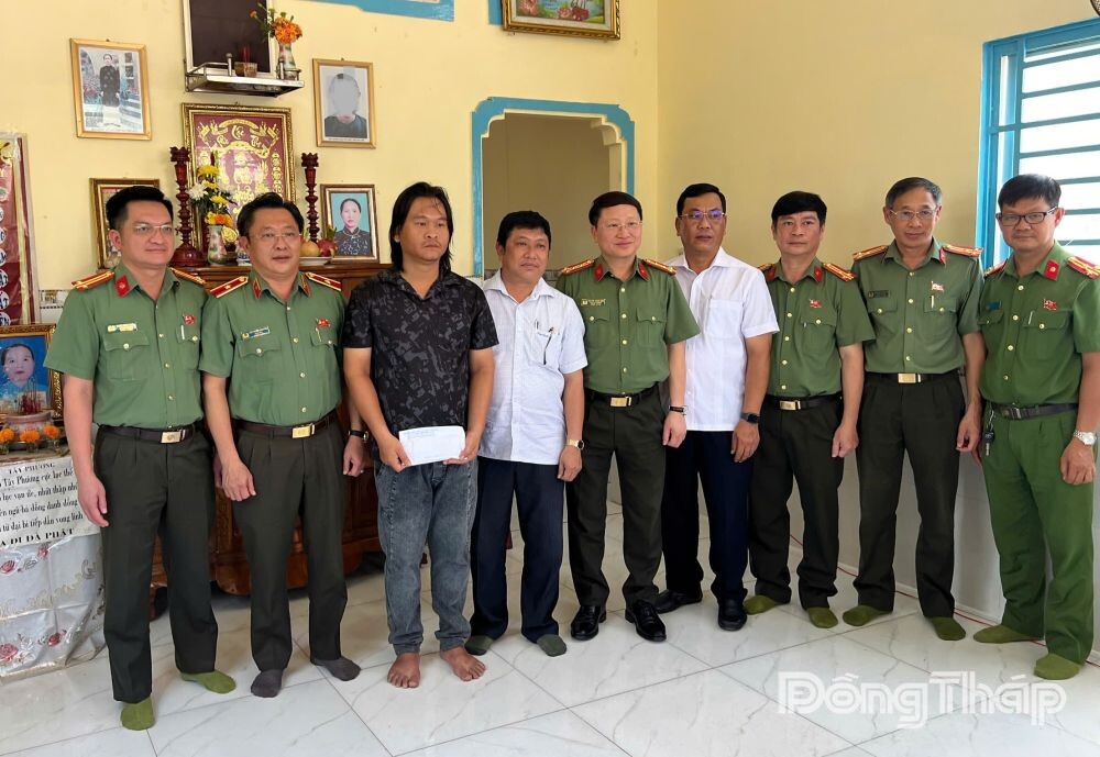 (ĐTO) Sáng 24-4, thừa ủy quyền của lãnh đạo Bộ Công an, Thiếu tướng Lâm Phước Nguyên, Giám đốc Công an tỉnh Đồng Tháp cùng Đoàn công tác đến thăm hỏi và trao tiền hỗ trợ gia đình đồng chí Phạm Văn Mịch, thành viên Tổ bảo vệ an ninh trật tự ấp Tân Huề, xã Tân Long, tỉnh Đồng Tháp, người đã hy sinh trong khi thực hiện nhiệm vụ.