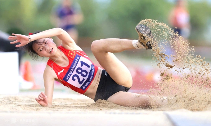 VĐV Hà Thị Thúy Hằng đạt 6,16 m để giành HC vàng nhảy xa nữ Đại hội thể thao bãi biển châu Á 2026, sáng 25-4.