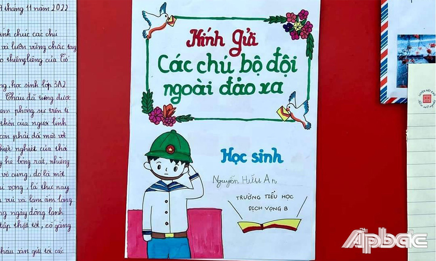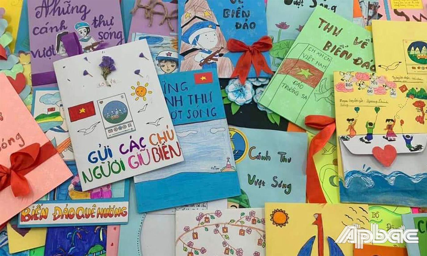 | Giáo viên và học sinh làm những bức thư động viên, chúc tết cán bộ, chiến sĩ tại các nhà giàn DK1. |