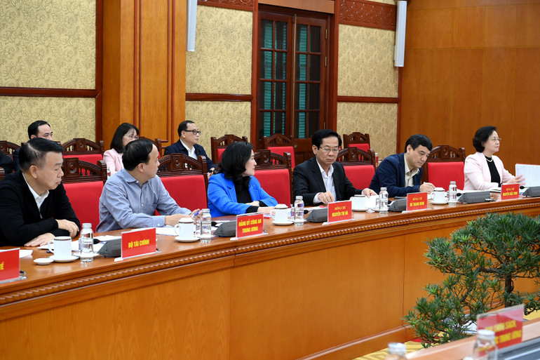 Dự buổi làm việc có đồng chí Phạm Thị Thanh Trà, Ủy viên Trung ương Đảng, Phó Thủ tướng Chính phủ; các đồng chí Ủy viên Trung ương Đảng, lãnh đạo các bộ, ban, ngành Trung ương.