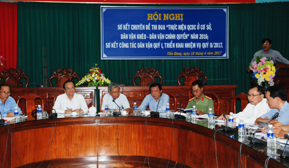 Ngày 19-4, Ban Dân vận Tỉnh ủy Tiền Giang tổ chức hội nghị sơ kết chuyên đề thi đua thực hiện quy chế dân chủ ở cơ sở, dân vận khéo, dân vận chính quyền, công tác dân vận quí I và triển chương trình công tác quý II/2017.