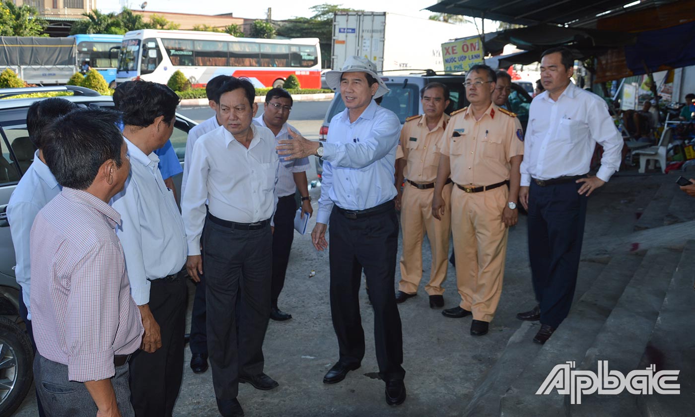 | Đồng chí Lê Văn Hưởng kiểm tra thực tế nút giao Thân Cửu Nghĩa. |