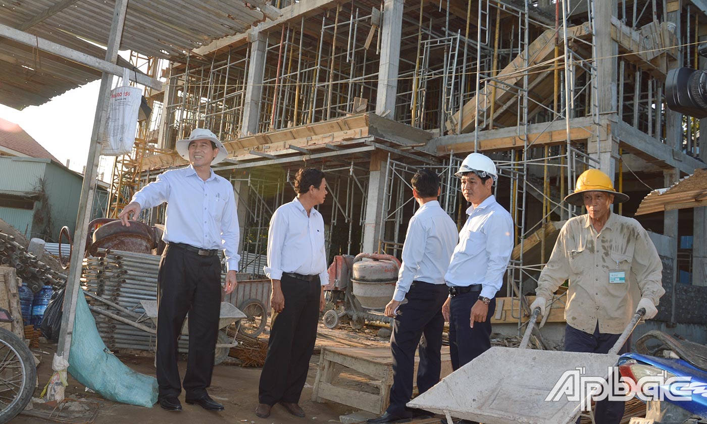 | Đồng chí Lê Văn Hưởng kiểm tra tiến độ thi công công trình Trụ sở Tiếp công dân tỉnh. |
