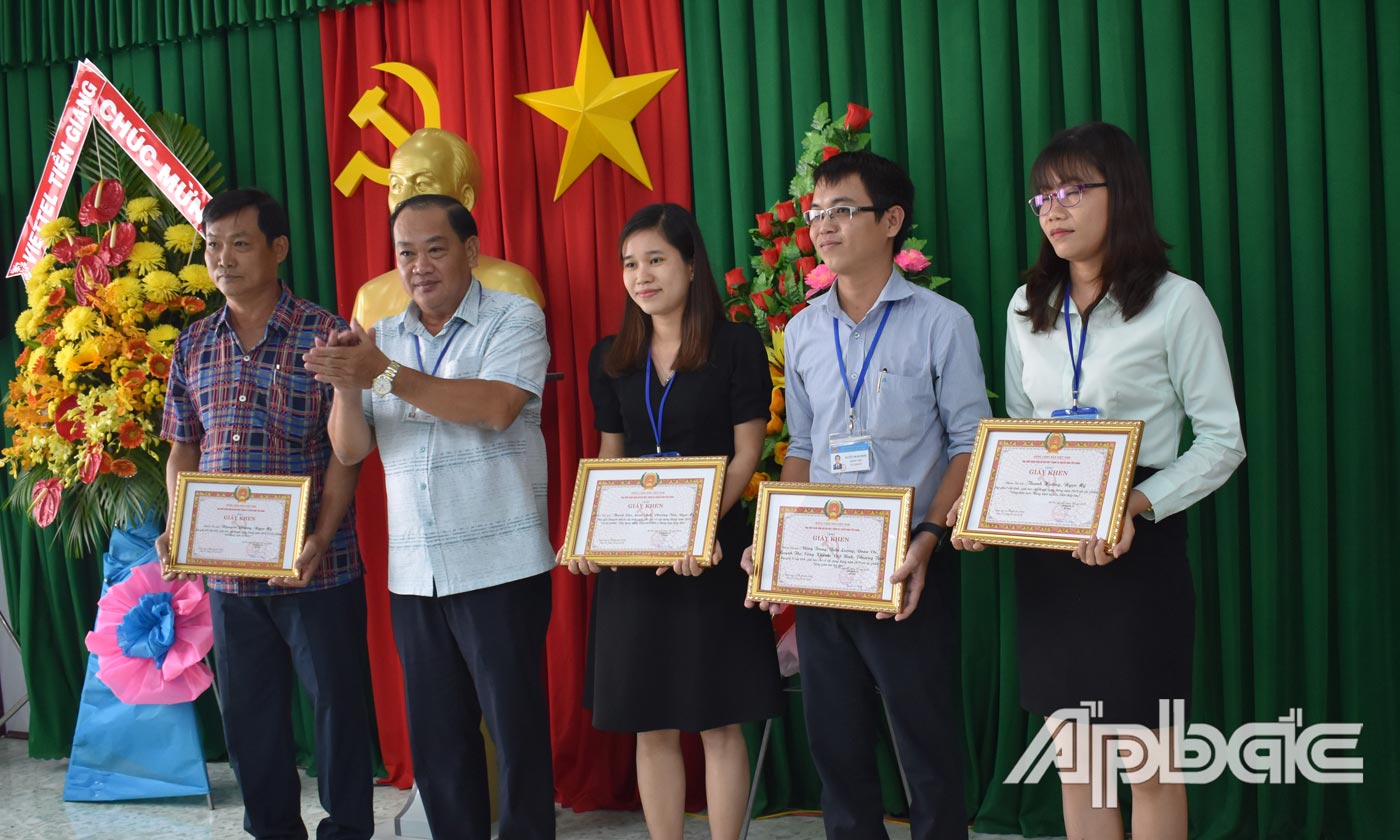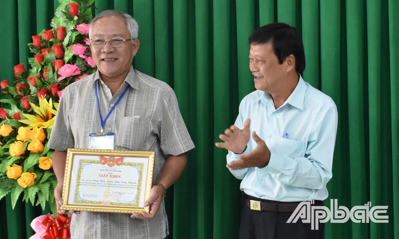 | Lãnh đạo Đài PT&TH Tiền Giang trao Giấy khen cho các tập thể, cá nhân. |
