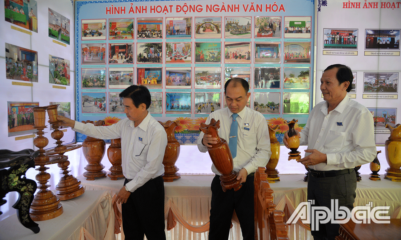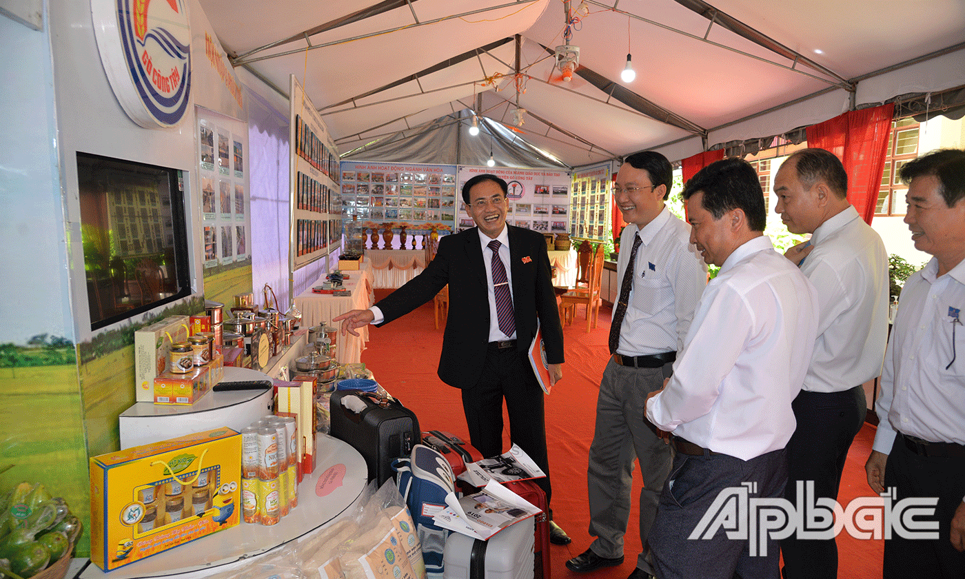 | Đại biểu tham quan khu trưng bày hình ảnh và các sản vật địa phương. |