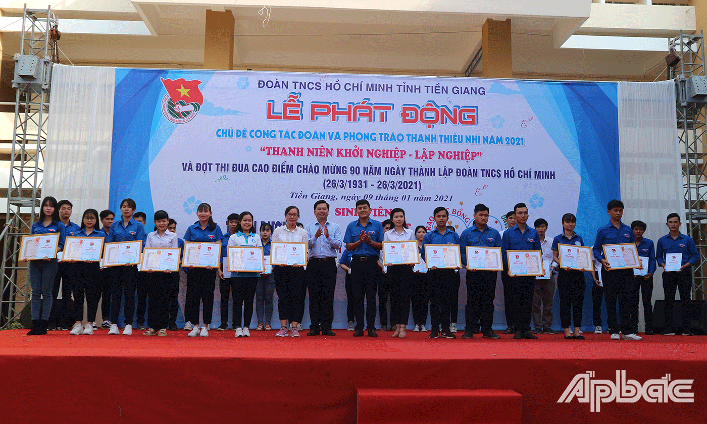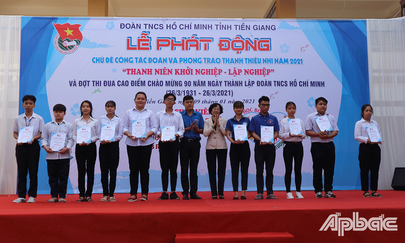 Dịp này, Ban Thường vụ Tỉnh đoàn Tiền Giang trao 37 Giấy chứng nhận đạt danh hiệu “Sinh viên 5 tốt”, “Học sinh 3 rèn luyện” cấp tỉnh cho các học sinh, sinh viên; vinh danh 10 sinh viên tiêu biểu đạt danh hiệu “Sinh viên 5 tốt” và 3 học sinh đạt danh hiệu “Học sinh 3 rèn luyện” cấp tỉnh năm học 2019 - 2020. Ban Thường vụ Tỉnh đoàn Tiền Giang phối hợp Hội Khuyến học tỉnh Tiền Giang trao 12 suất học bổng “Vì tương lai Tiền Giang” (2 triệu đồng/suất) cho 12 sinh viên có hoàn cảnh khó khăn và học bổng “Thắp sáng ước mơ tuổi trẻ học đường Tiền Giang” năm học 2020 - 2021 (1 triệu đồng/suất) cho 8 học sinh, sinh viên có hoàn cảnh khó khăn trên địa bàn tỉnh. Trung tâm Ngoại ngữ Mai Lâm trao 400 suất học bổng “Xóa mất gốc Tiếng Anh” cho các đoàn viên, học sinh, sinh viên.