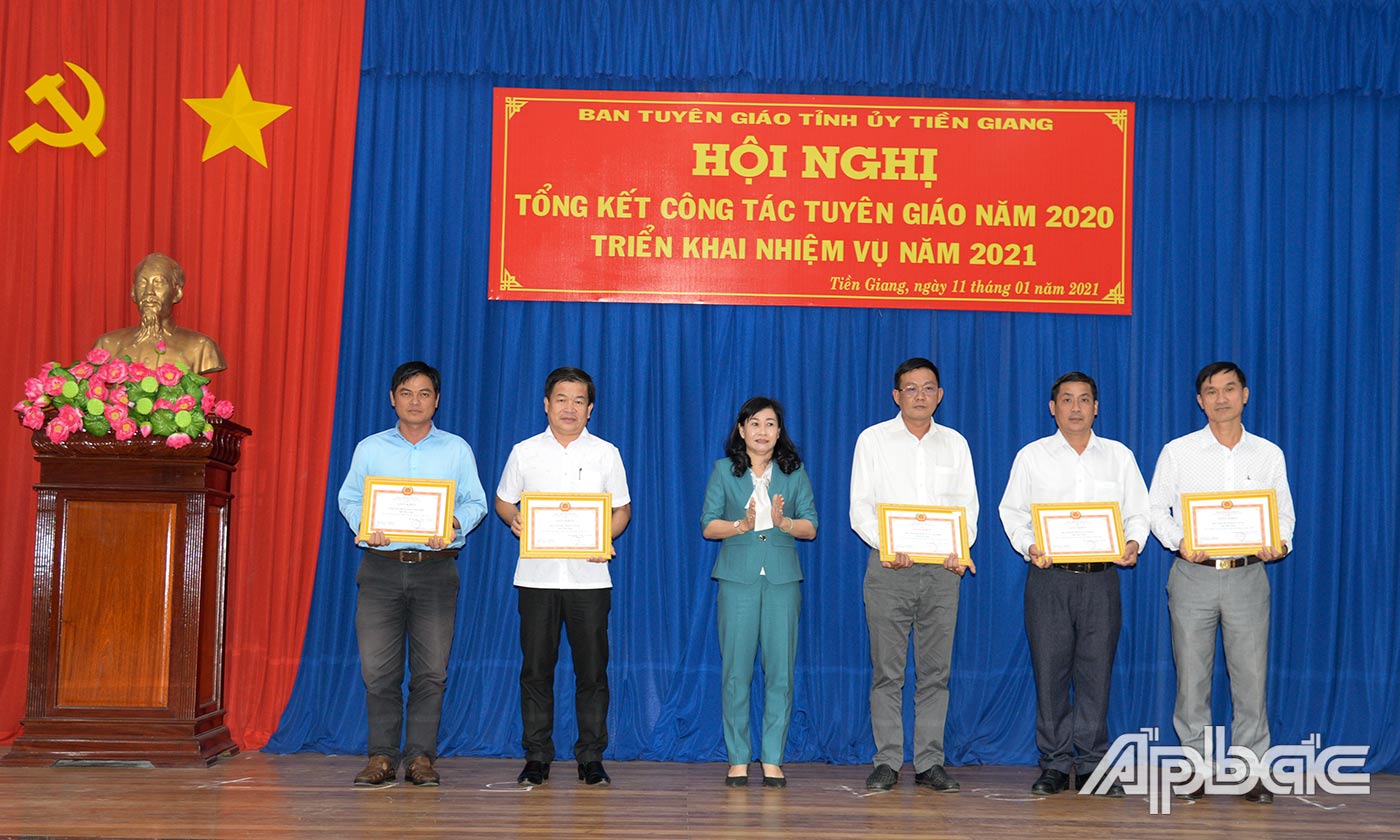 Dịp này, Ban Tuyên giáo Tỉnh ủy Tiền Giang tặng Giấy khen cho các tập thể, cá nhân có thành tích xuất sắc năm 2020.