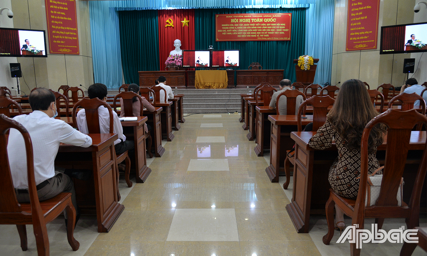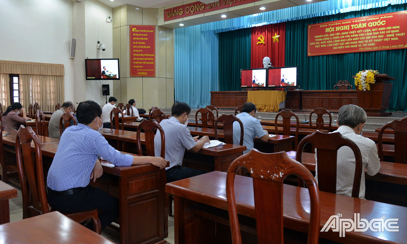 Tại điểm cầu Tiền Giang, đồng chí Lê Văn Tý, Phó Trưởng Ban Tuyên giáo Tỉnh ủy; cùng lãnh đạo, trưởng, phó phòng các Sở: Thông tin và Truyền thông, Văn hóa - Thể thao và Du lịch, Báo Ấp Bắc, Đài Phát thanh và Truyền hình Tiền Giang, Hội Văn học - Nghệ thuật, Liên hiệp các Hội Khoa học - Kỹ thuật, Hội Nhà báo tham dự.
