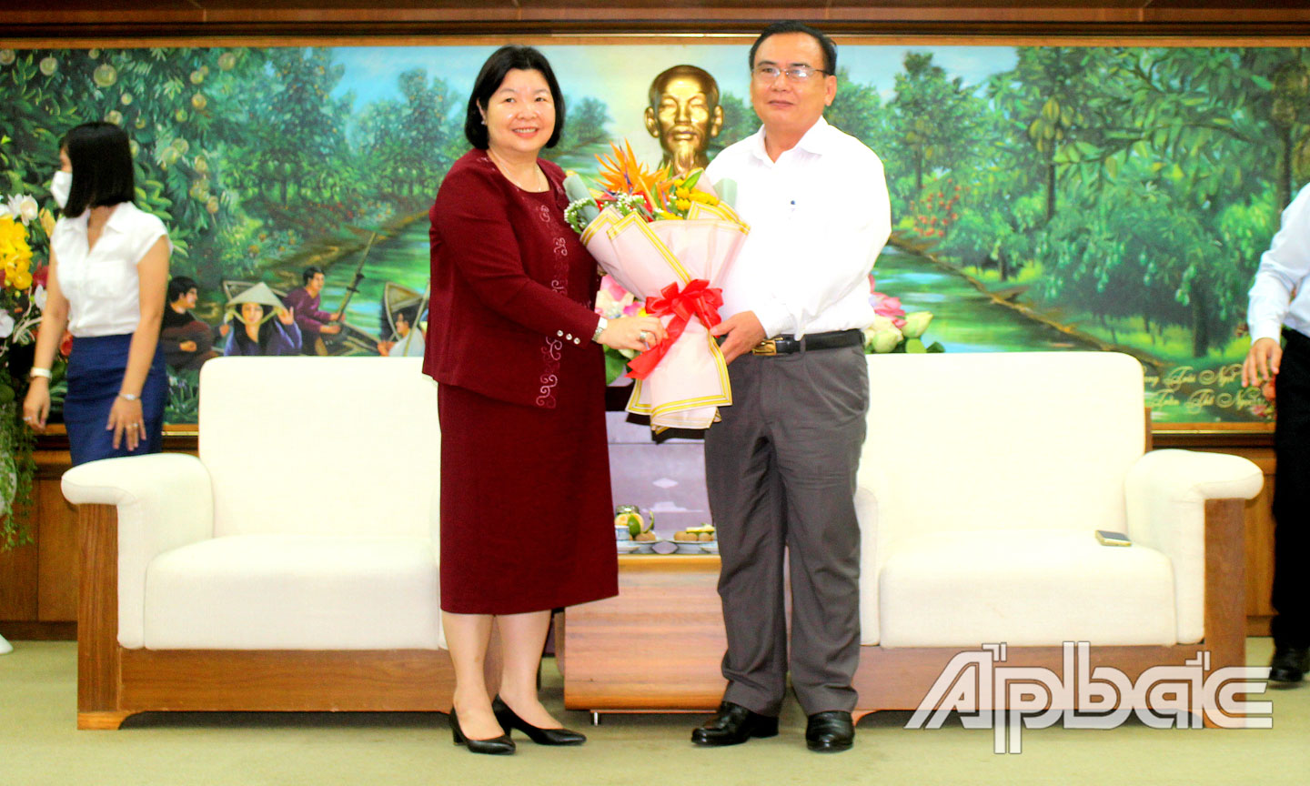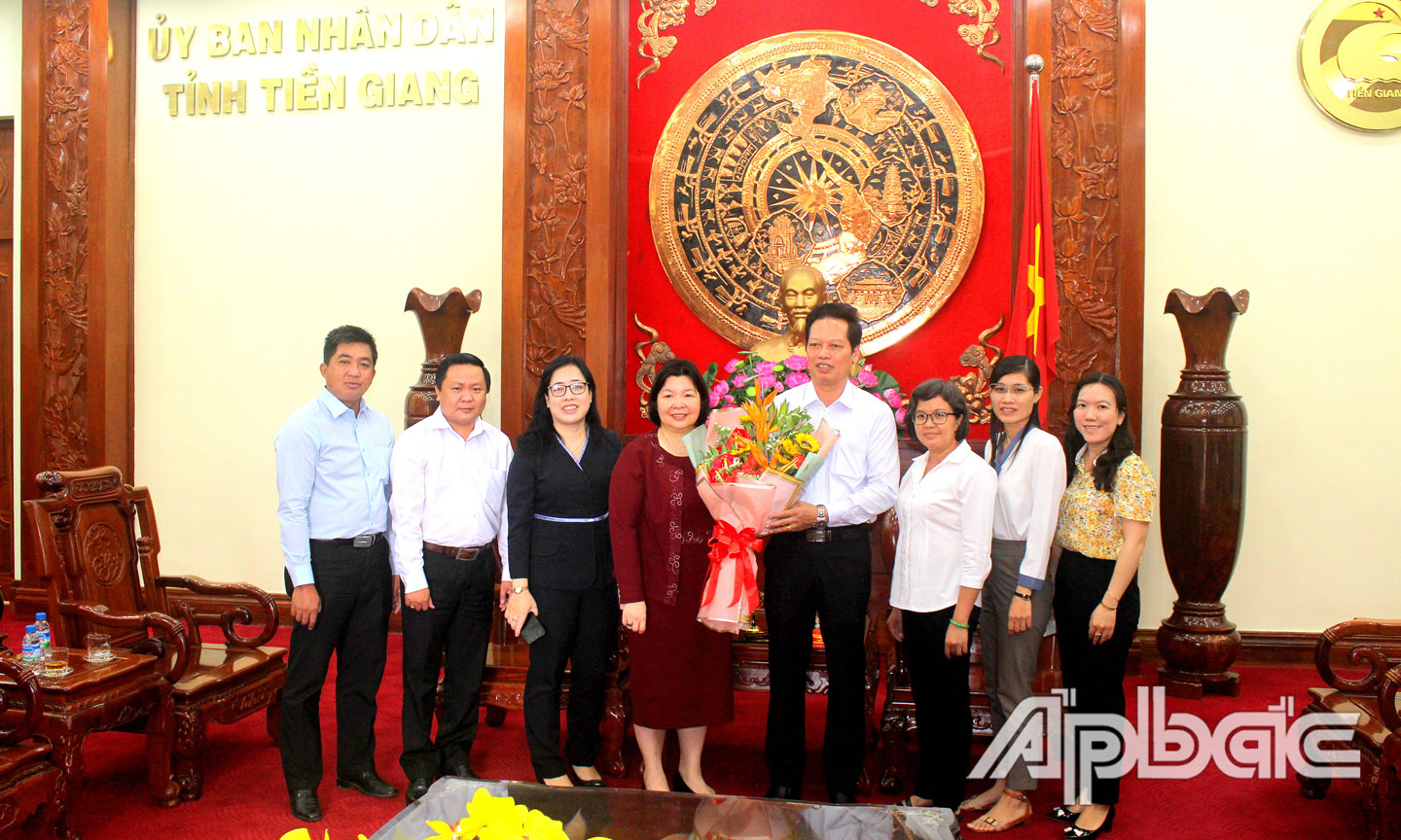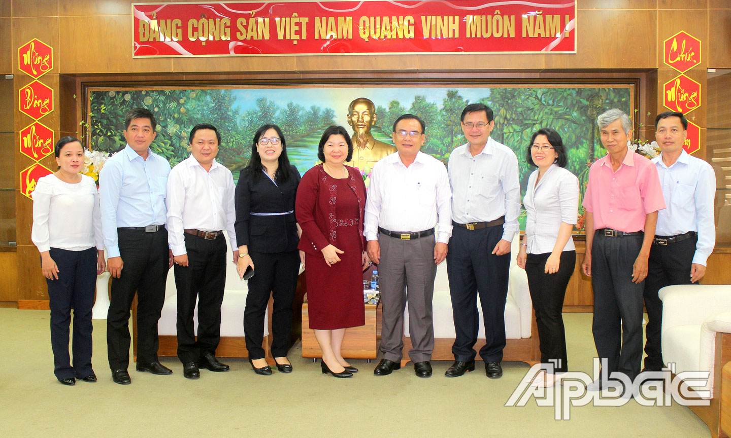 | Quang cảnh tiếp đồng chí Cao Xuân Thu Vân (thứ 2 bên trái qua) tại Tỉnh ủy Tiền Giang. |