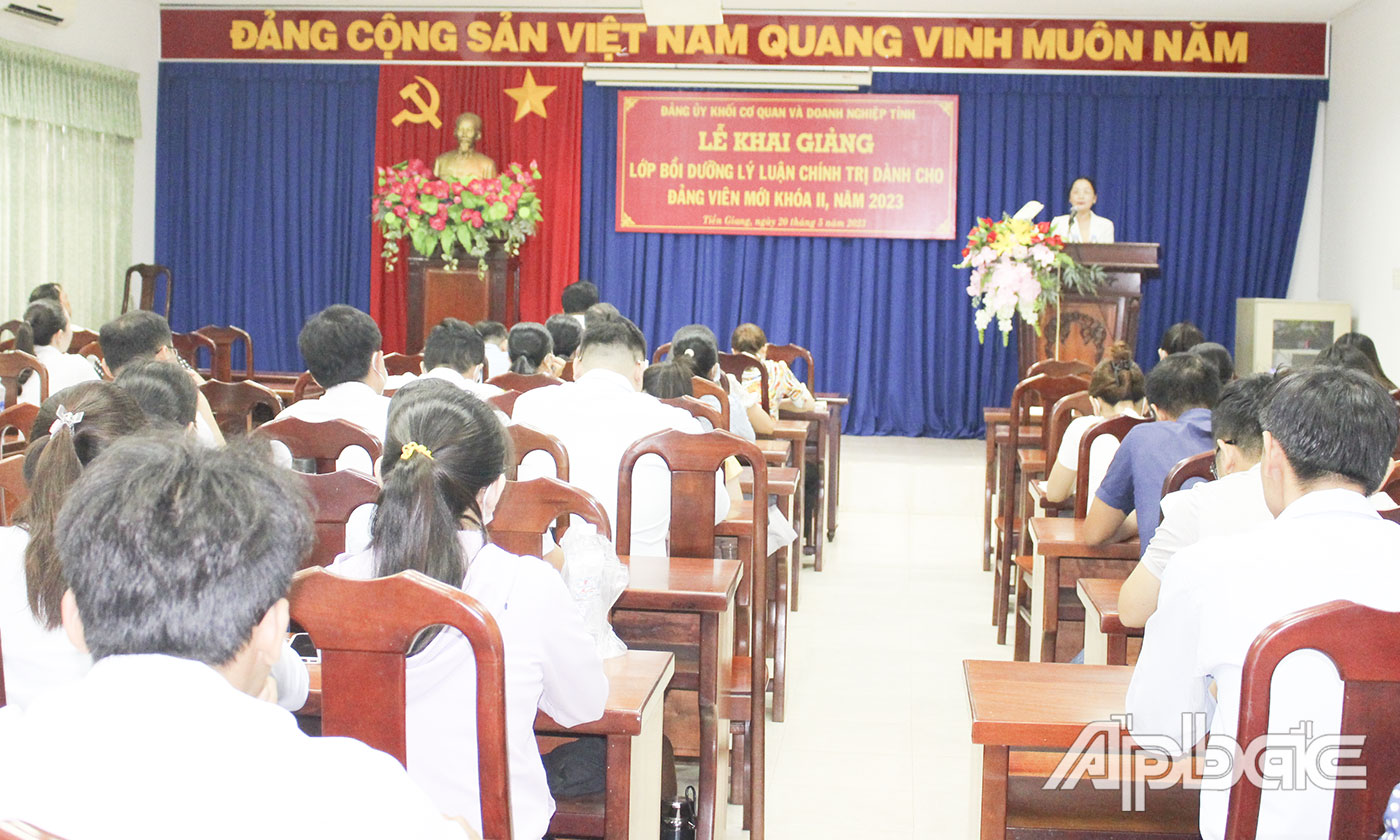 (ABO) Sáng 20-5, Đảng bộ Khối Cơ quan và Doanh nghiệp tỉnh Tiền Giang (gọi tắt là Đảng ủy Khối) tổ chức Lễ khai giảng lớp Bồi dưỡng lý luận chính trị dành cho hơn 80 đảng viên khóa II, năm 2023. Trưởng Ban Tuyên giáo Đảng ủy Khối Võ Văn Dũng dự và chủ trì buổi lễ.