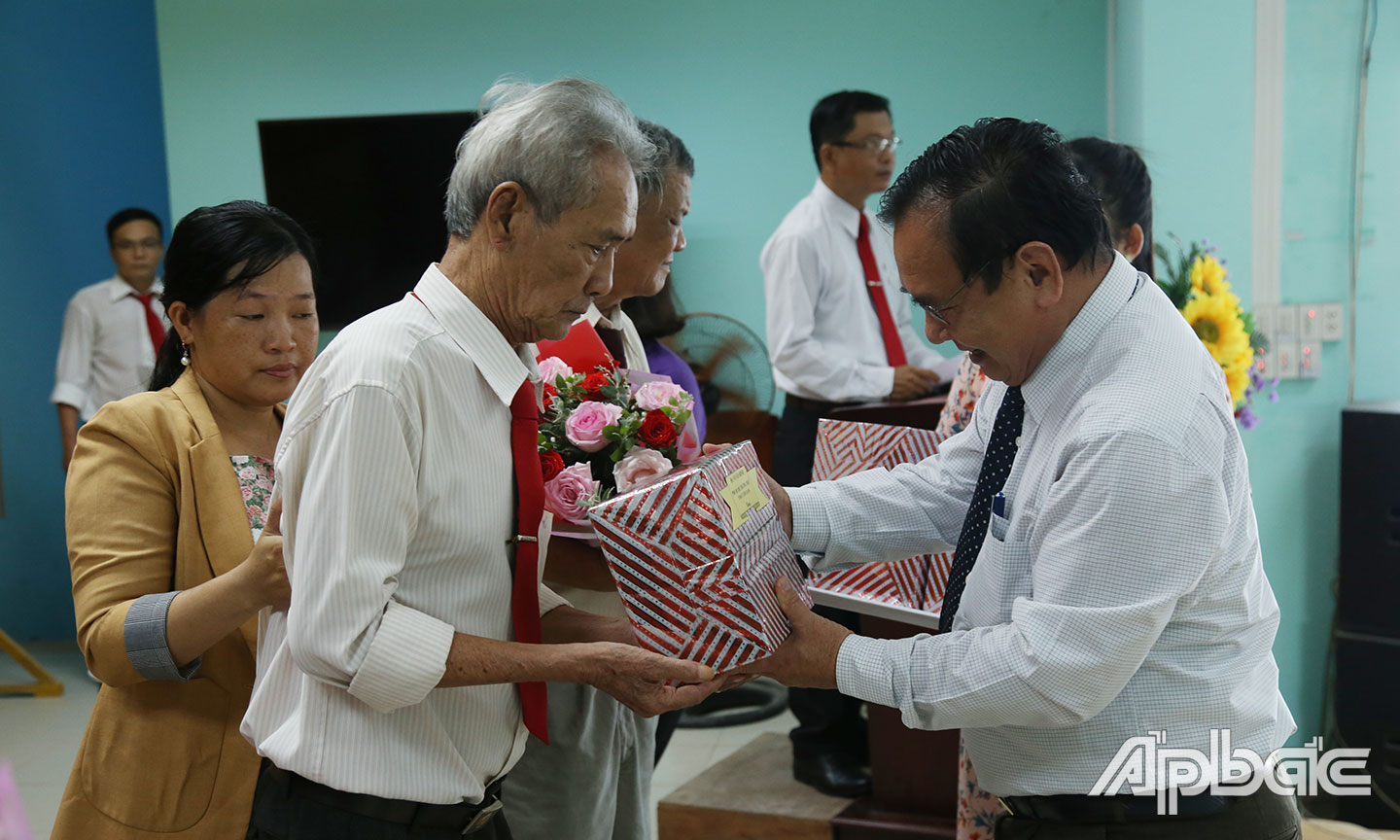 * Cùng ngày, đồng chí Võ Văn Bình đến tận nhà và trao Huy hiệu Đảng 75 năm tuổi Đảng cho đảng viên Hồ Thị Bảy thuộc Đảng bộ xã Mỹ Phong, TP. Mỹ Tho.