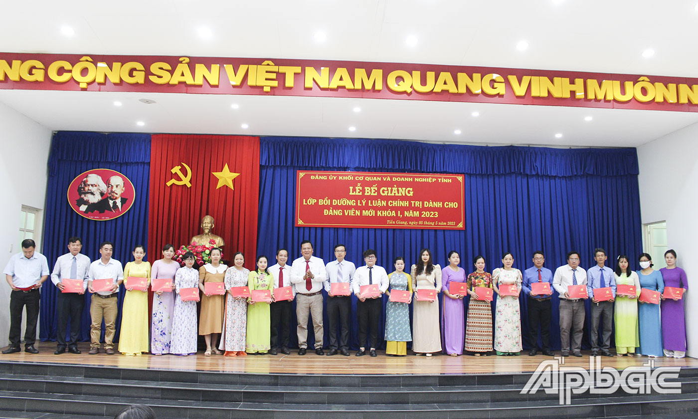 (ABO) Sáng 5-5, Ban Thường vụ Đảng ủy Khối Cơ quan và Doanh nghiệp tỉnh Tiền Giang (gọi tắt là Đảng ủy Khối) tổ chức Lễ bế giảng lớp Bồi dưỡng lý luận chính trị dành cho 78 đảng viên mới khóa I năm 2023.