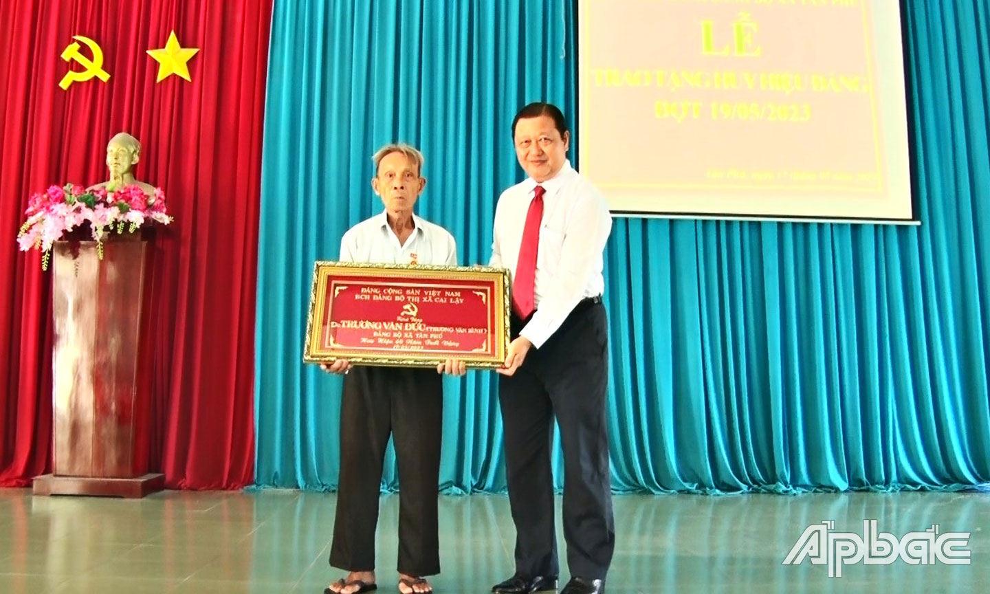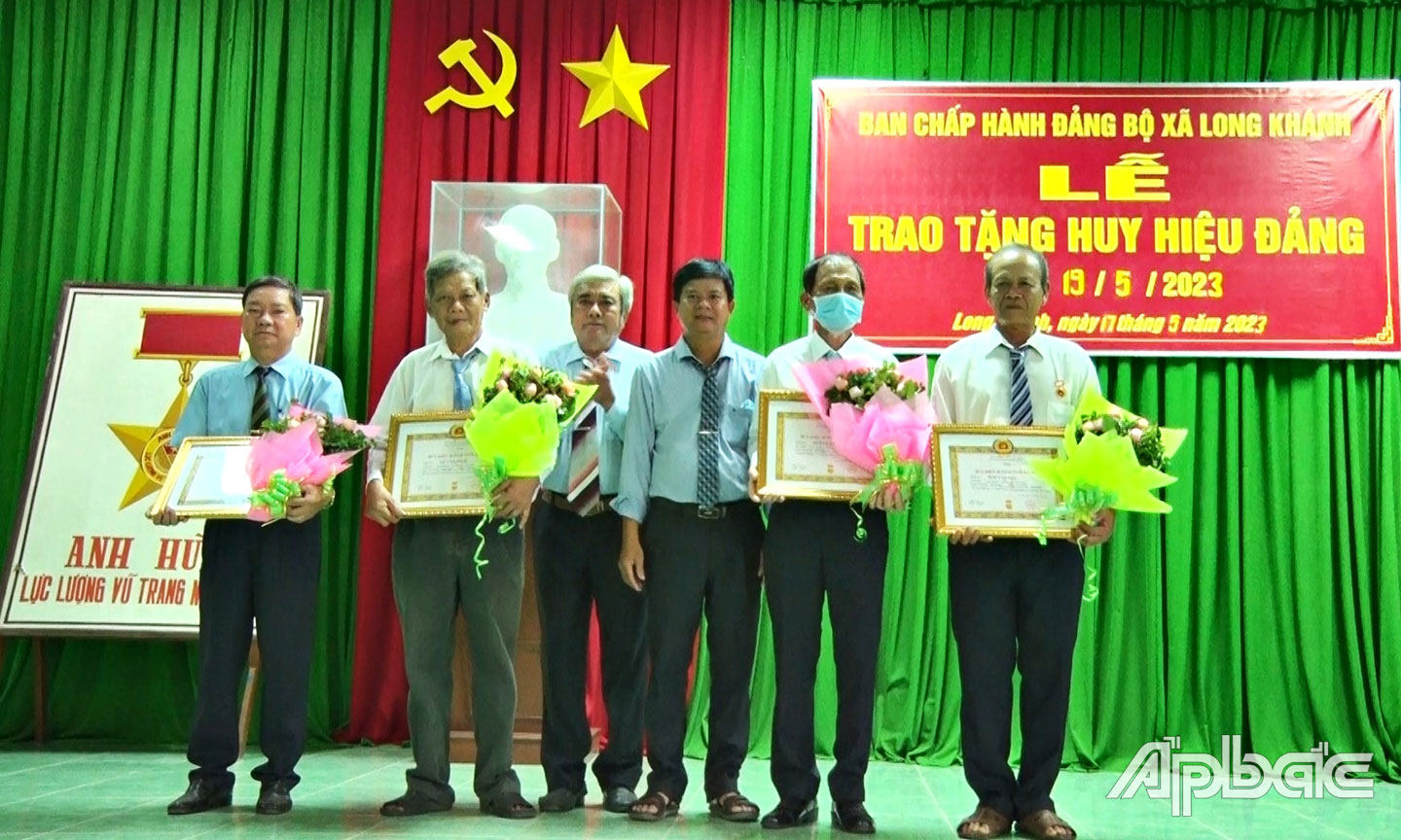 Chiều cùng ngày,, Đảng bộ xã Long Khánh, TX. Cai Lậy đã tổ chức Lễ trao tặng Huy hiệu 40 năm, 30 năm tuổi Đảng cho 4 đảng viên đợt 19-5. Đồng chí Đoàn Bảo Ngoan, Ủy viên Ban Thường vụ Thị ủy, Phó Chủ tịch UBND TX. Cai Lậy đến dự và trao Huy hiệu Đảng cho các đảng viên.