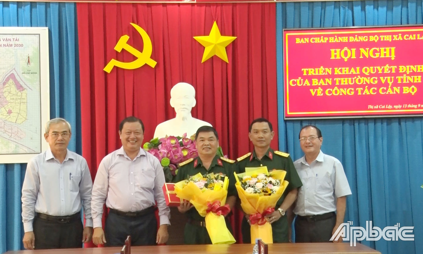 (ABO) Ngày 13-9, Ban Thường vụ Thị ủy Cai Lậy tổ chức Hội nghị triển khai Quyết định của Ban Thường vụ Tỉnh ủy Tiền Giang về chỉ định bổ sung Ủy viên Ban Chấp hành, Ủy viên Ban Thường vụ Thị ủy Cai Lậy nhiệm kỳ 2020 - 2025 đối với Thượng tá Nguyễn Hoàng Nhân, Chỉ huy trưởng Ban Chỉ huy Quân sự TX. Cai Lậy.