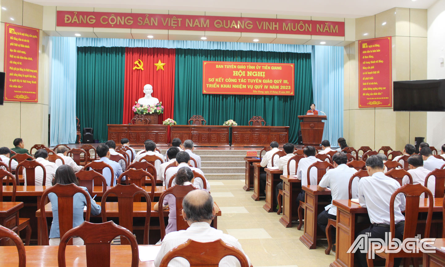 | Quang cảnh Hội nghị sơ kết công tác tuyên giáo quý III, triển khai nhiệm vụ quý IV năm 2023 do Ban Tuyên giáo Tỉnh ủy tổ chức. |