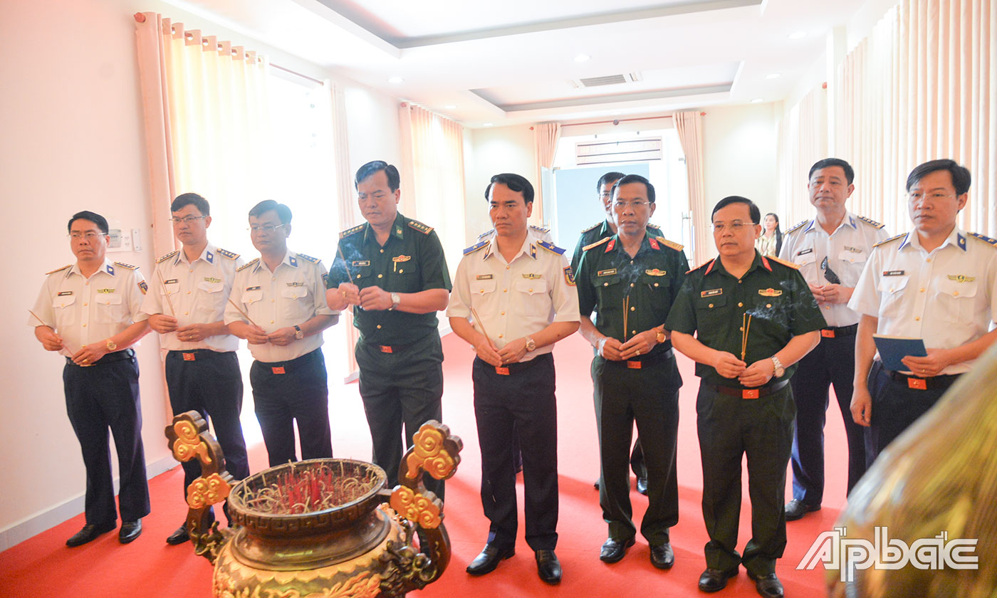 Tại Bộ Chỉ huy BĐBP tỉnh Tiền Giang, Đoàn công tác đã thắp hương Phòng thờ Chủ tịch Hồ Chí Minh và Đại tướng Võ Nguyên Giáp.