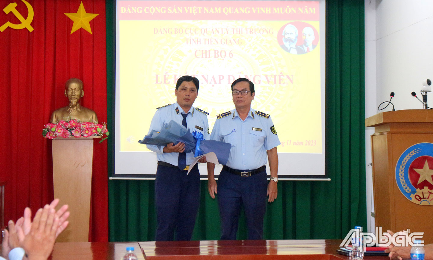 * Cùng ngày, Chi bộ 6 thuộc Đảng bộ Cục Quản lý thị trường tỉnh Tiền Giang tổ chức Lễ kết nạp đảng viên mới đối với quần chúng Nguyễn Phan Vĩnh công chức Đội Quản lý thị trường số 6.