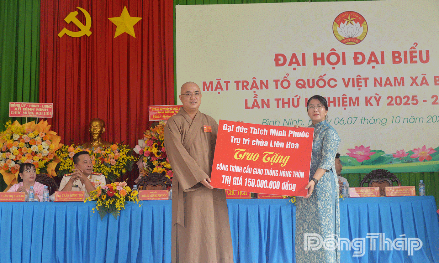Tại Đại hội, Đảng ủy xã đã trao tặng Ủy ban MTTQ xã Bình Ninh công trình nhà trị giá 50 triệu đồng; đại đức Thích Minh Phước, trụ trì chùa Liên Hoa trao tặng công trình cầu giao thông nông thôn trị giá 150 triệu đồng.