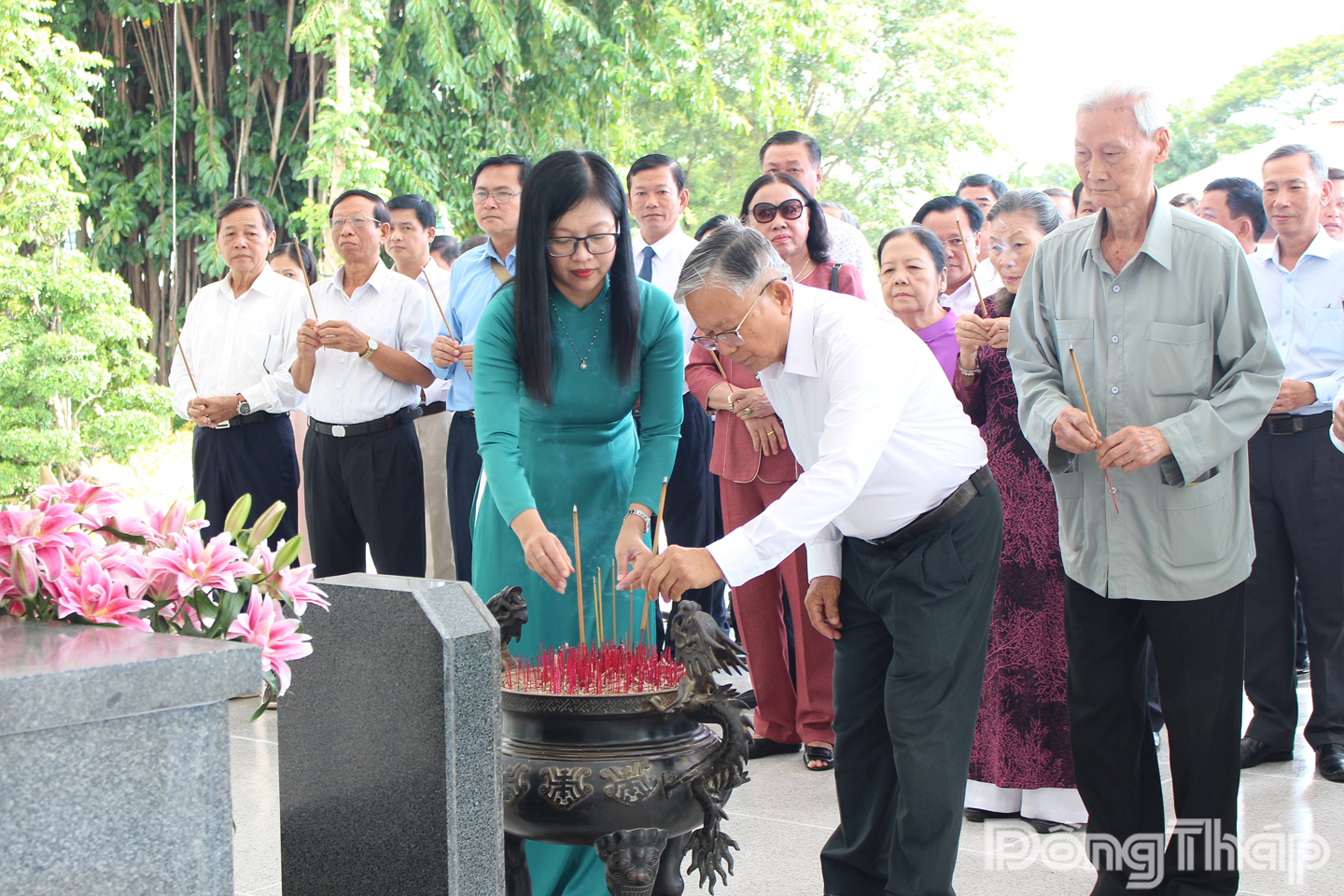 (ĐTO) Nhân kỷ niệm 95 năm Ngày truyền thống ngành Tuyên giáo (1-8-1930 - 1-8-2025) và công tác dân vận của Đảng (15-10-1930 - 15-10-2025), sáng 14-10, Đoàn đại biểu cán bộ Tuyên giáo và Dân vận qua các thời kỳ do đồng chí Nguyễn Thị Kim Tuyến, Ủy viên Ban Thường vụ Tỉnh ủy, Trưởng Ban Tuyên giáo và Dân vận Tỉnh ủy Đồng Tháp làm Trưởng đoàn đến viếng, dâng hoa, dâng hương mộ Cụ Phó bảng Nguyễn Sinh Sắc.