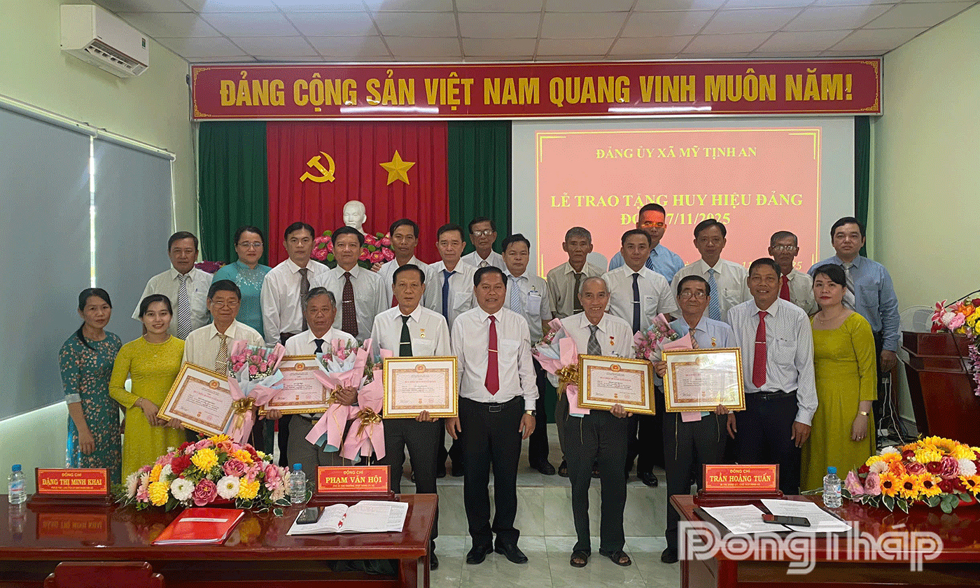 | Đảng ủy xã Mỹ Tịnh An trao Huy hiệu Đảng cho 5 đảng viên. |