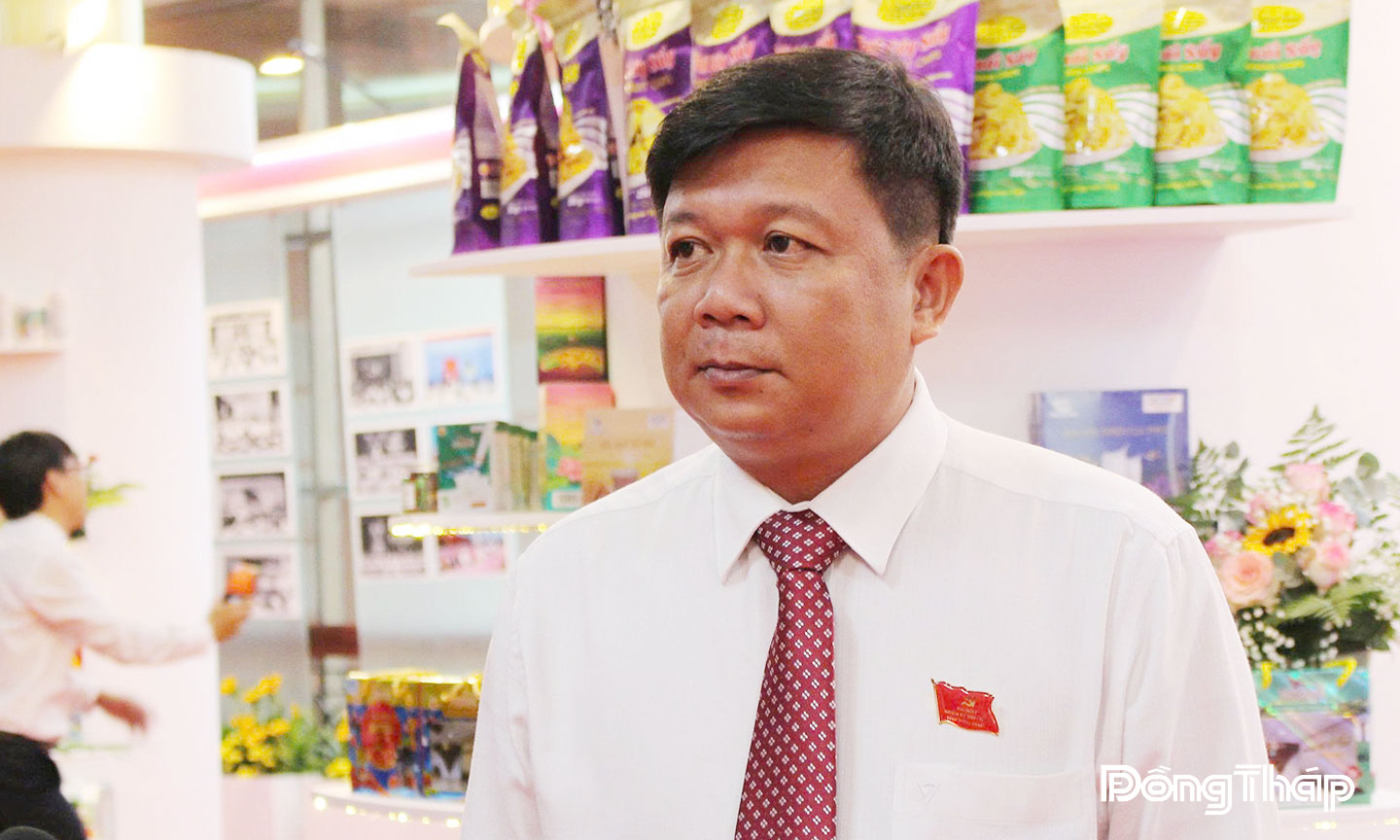 Đại biểu tham quan sản phẩm đặc trưng Đồng Tháp. Ảnh: TUẤN LÂM |